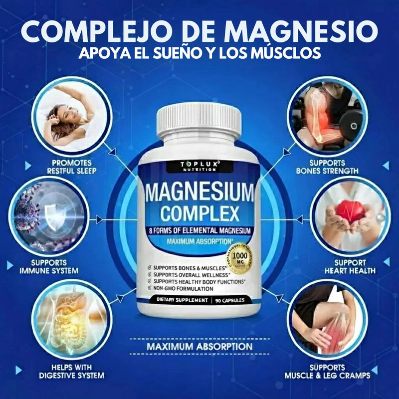 Descubre cómo nuestro suplemento de magnesio complejo con 8 formas elementales te ofrece la máxima absorción para potenciar tu energía y bienestar general.
